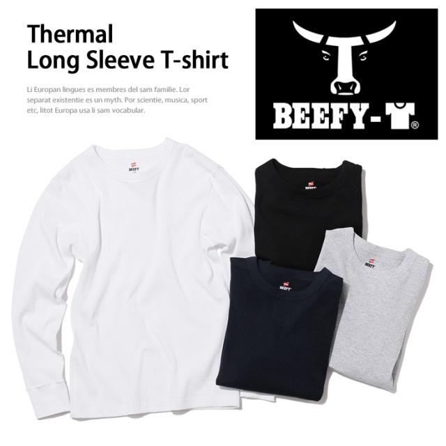 新作 ヘインズ Hanes ビーフィー BEEFY-T サーマル Tシャツ ロングスリーブ HM4-Q103 カットソー メンズ トップス 長袖 ブランド ロンT ロングTシャツ シンプル ワッフル クルーネック 無地 コットン混 ブランド レディース