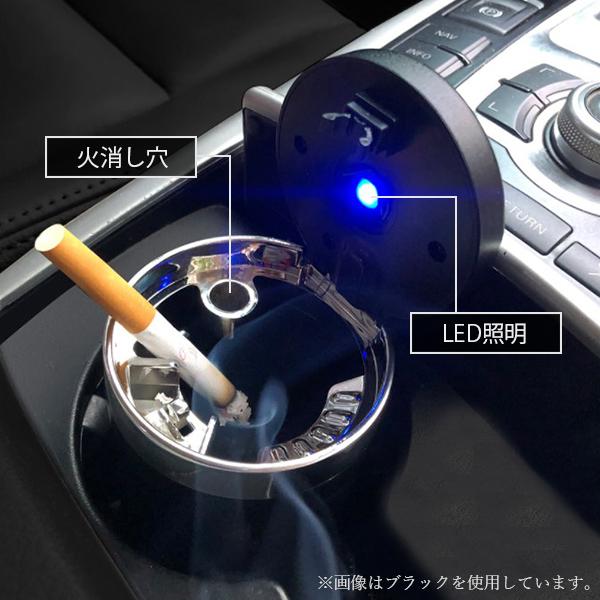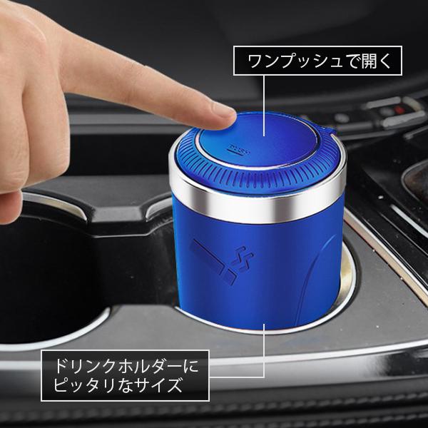 車 灰皿 車載用 吸い殻 ブルー LED搭載 高温耐性 火消し穴 水洗いOK プッシュオープン 耐火 消火 タバコ置き タバコ 喫煙 (管理S) 送料無料