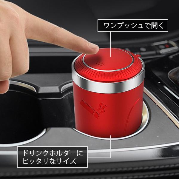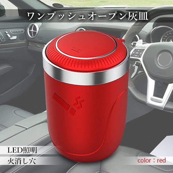 車 灰皿 車載用 吸い殻 レッド LED搭載 高温耐性 火消し穴 水洗いOK プッシュオープン 耐火 消火 タバコ置き タバコ 喫煙 (管理S) 送料無料