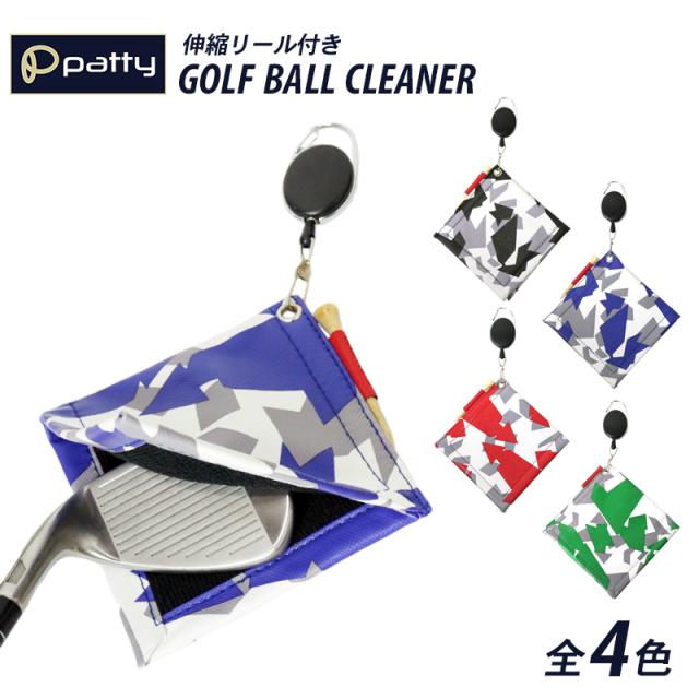 ゴルフ ボールクリーナー ボール拭き タオル ティー付き 伸縮リール ボール ゴルフクラブ 拭き 1000円ポッキリ