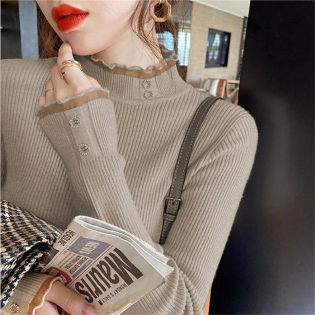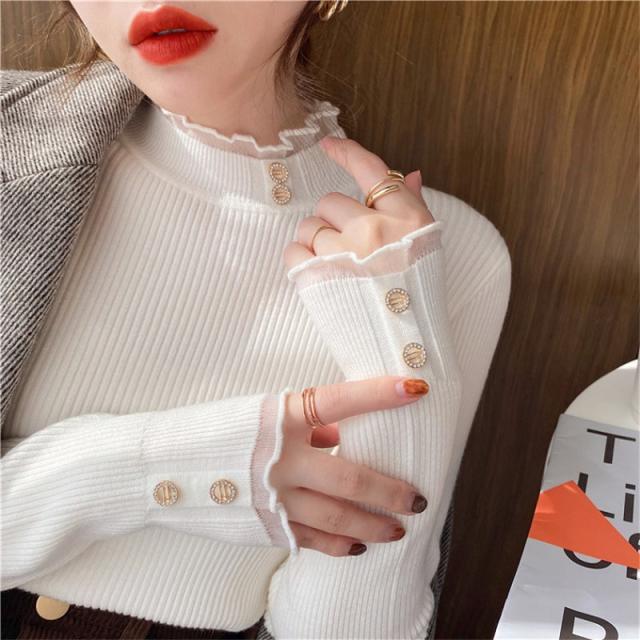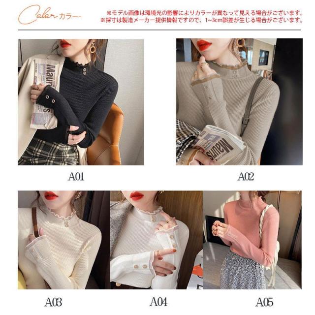 ニット レディース 秋服 ニットセーター レース 長袖 プルオーバー 春 秋 冬 カジュアル 秋コーデ インナー レイヤード プチ