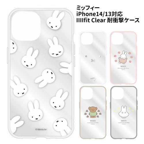 送料無料 ミッフィー IIIIfit Clear iPhone14/13対応 ケース MF-337 /フェイス総柄 フェイス ミッフィー ボリス おばけごっこ/