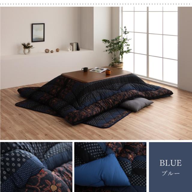 日本製 こたつ布団 こたつ布団掛敷セット 万葉 約205x245cm 2色対応 掛敷セット 国産 長方形 和モダン柄 キルト加工 洗える ふっくら ボリューム 静電気軽減