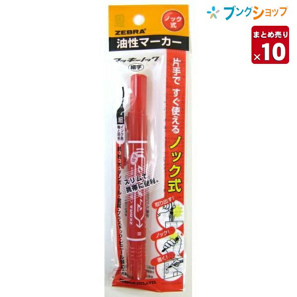 【10本まとめ売り】 ゼブラ 油性マーカー マッキーノック赤 細字 ロングセラー油性マーカー 机の中の定番アイテム 便利なノックタイプ 油性染料 極細細字両方 速乾性 耐水性 紙 布 木 ダンボール ガラスプラスチック 金属ビニール P-YYSS6-R 【送料無料】