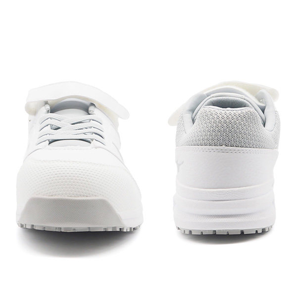 空気が乾燥している時にも対応できる静電気帯電防止タイプのワークシューズです。JSAAが定める規格の安全基準を満たす、つま先保護先芯入りの型式認定に合格した作業靴です。マジックテープとゴム紐タイプの安全性を考慮した靴です。