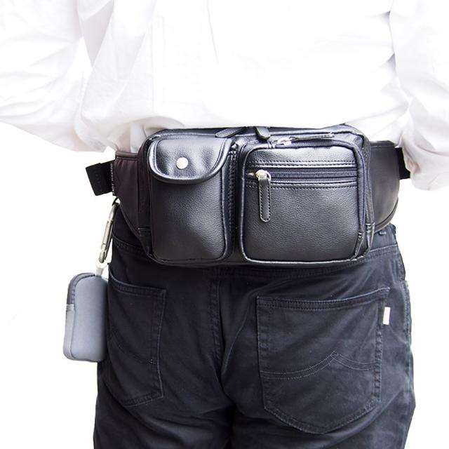 ◆ 体にフィットしやすいソフト合皮を使用したウエストポーチ。