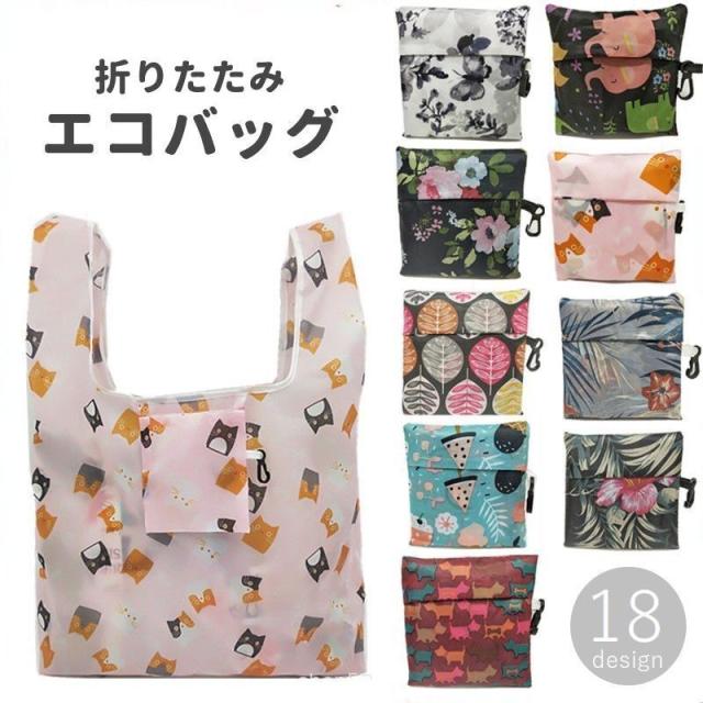 エコバッグ レディース メンズ 手提げ型 折りたたみ コンパクト マイバッグ ショッピングバッグ 総柄 花柄 ネコ おしゃれ