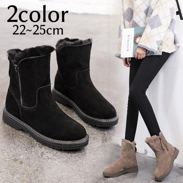 ショートブーツ ムートンブーツ 厚底 レディース 女性用 靴 無地 スエード調 裏ボア ファスナー 暖かい 防寒 もこもこ おし