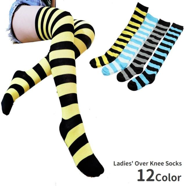 オーバーニーソックス ニーハイ 靴下 レディース 太ボーダー柄 カジュアル かわいい おしゃれ 普段使い カラバリ豊富 女性用
