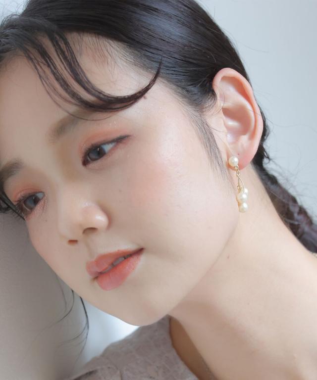アシンメトリーに揺れ動くパールとそのたびにキラリと光るジルコニアが繊細で華やか。