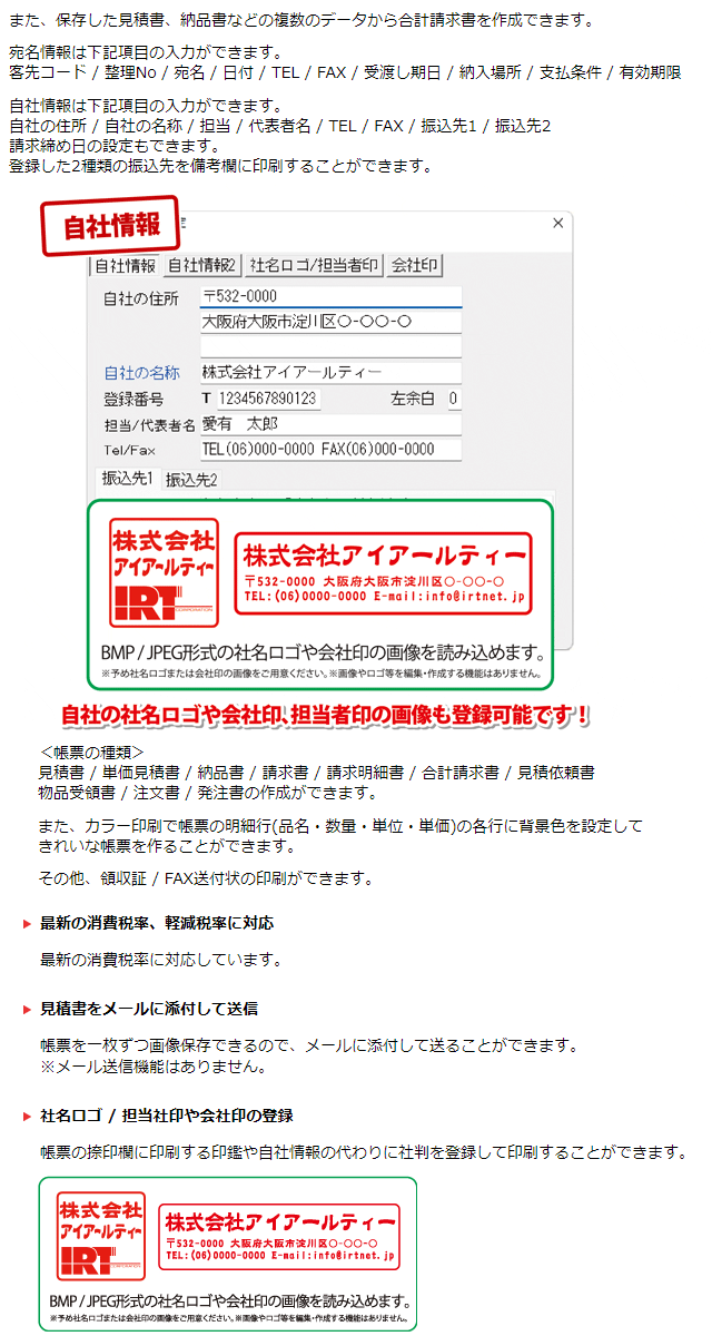 IRTB0510 3ライセンスパック。見積書・納品書・請求書などの帳票作成ができるソフトです。