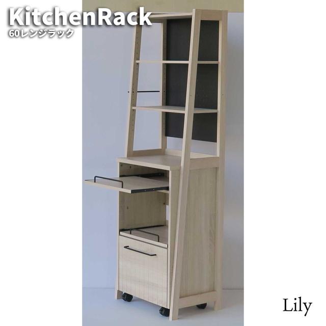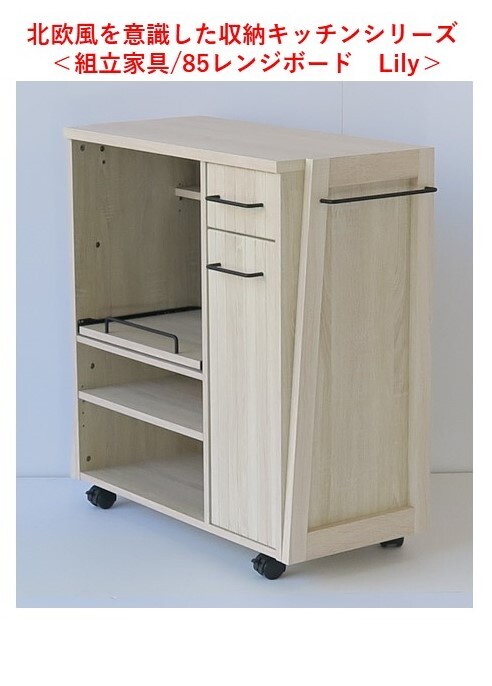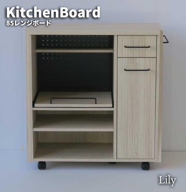 Lily リリー 85レンジボード (レンジ台 収納棚 キャスター カウンター キッチンボード 台所 可動棚 引出し ナチュラル 木目 レトロ アンティーク カントリー シンプル 可愛い キュート 白 W85 幅85cm H90 高さ90cm)