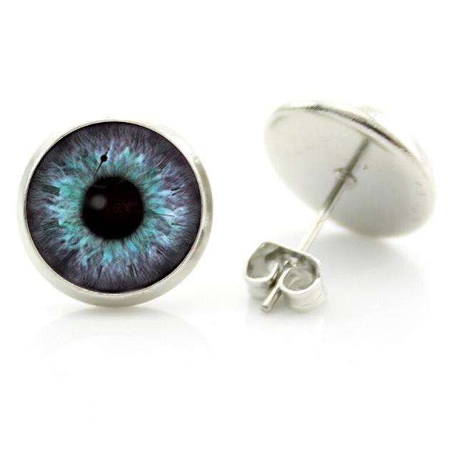 14mm カボションステンレスピアス (デビルアイ) 1ペア 両耳 目玉 ブルーアイ めだま メダマ 眼 青い目 不気味 仮装 悪魔 丸型 丸い カボーション 20G 20ゲージ 20g スタッドピアス キャッチピアス メンズ レディース プレゼント サージカルステンレス316L製