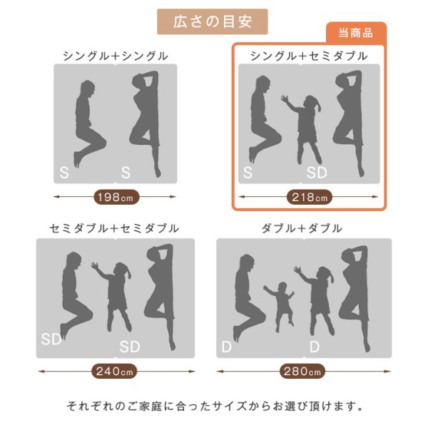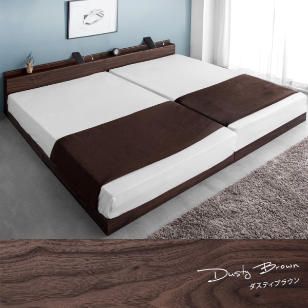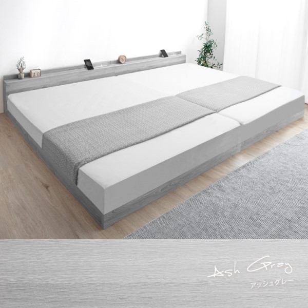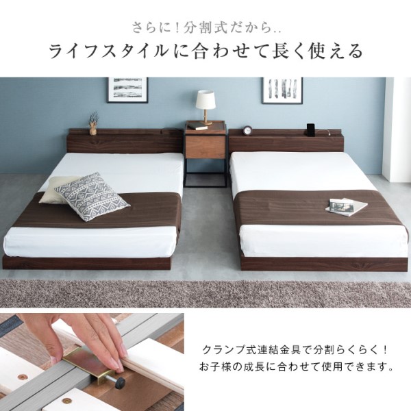 連結ベッド 幅218 (S+SD) ワイドキング マットレス付き USB・2コンセント付 ローベッド 連結 2口 コンセント 宮棚 すのこ マットレス ボンネルコイル ボンネルコイルマットレス シングル セミダブル キング ベッドフレーム 宮付き おしゃれ