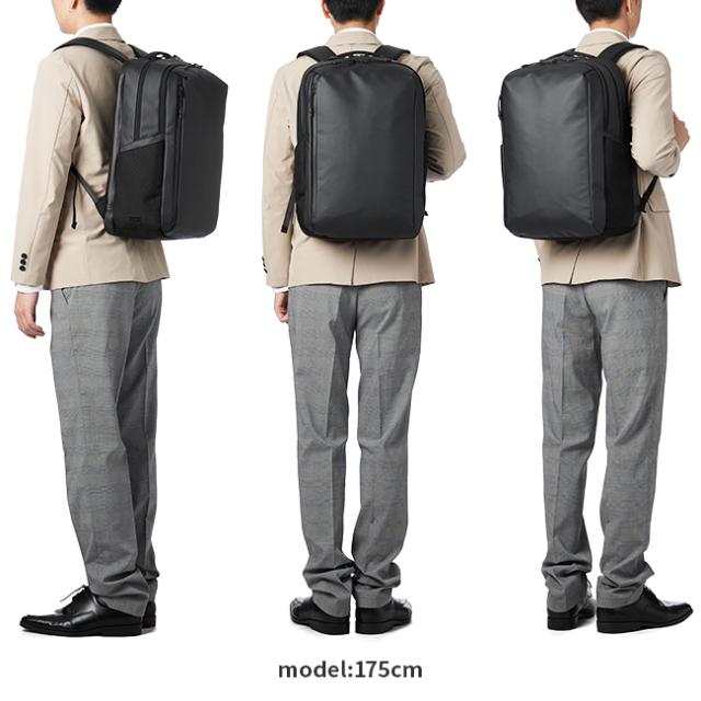 | ブランド |エース. ジーンレーベル / ace. GENE LABEL シリーズ |Tコミューター / T-COMMUTER 品番 |67802 形状 |ビジネスリュック / バックパック 外寸 |W310×H450×D140[mm] 重量 |約 1080g 収納サイズ |B4ファイル 容量 |約 20L 素材 |主素材:合成皮革(抗ウイルス・抗菌加工) |副素材:ナイロン1260dnコーデュラバリスティックPU加工 仕様 |2気室 / B4ファイル収納 / PC収納(15.6inch) |