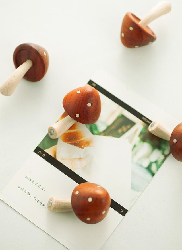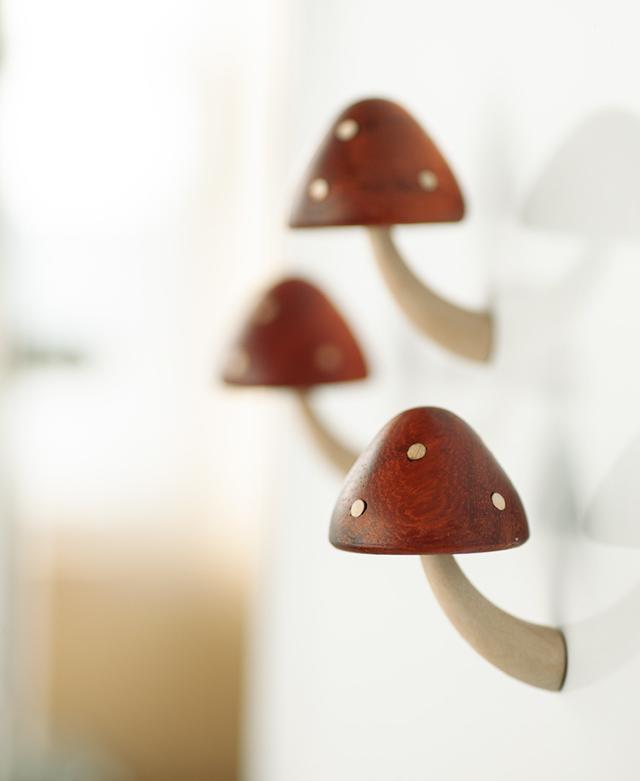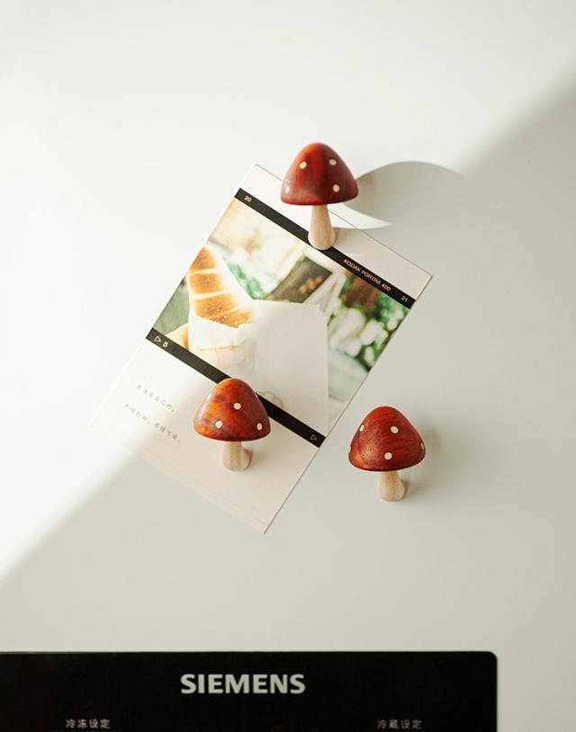 まるで壁からキノコが生えてるような、木製おもしろマグネットです。
