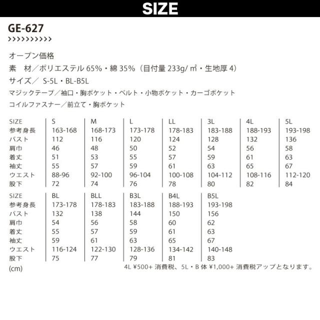 エスケープロダクト 長袖ツナギ 5L〜B5L大きいサイズ GE-627