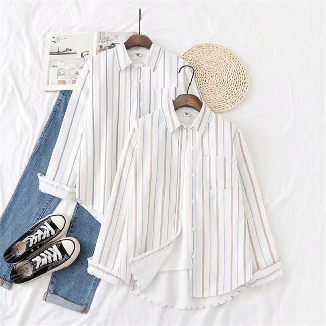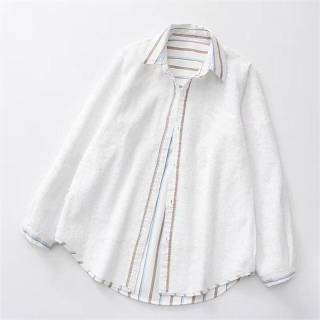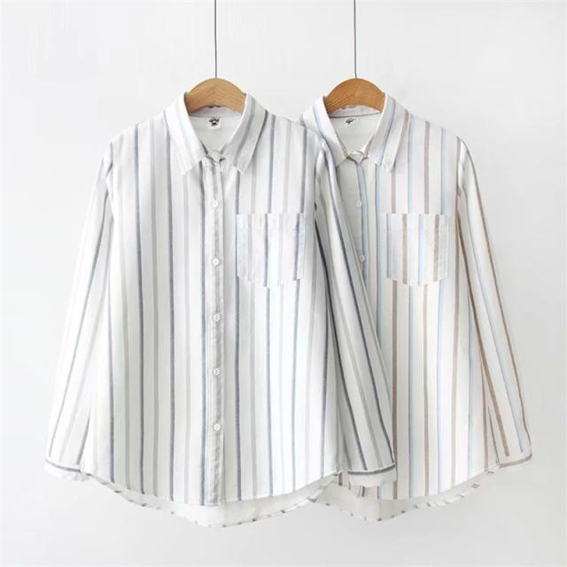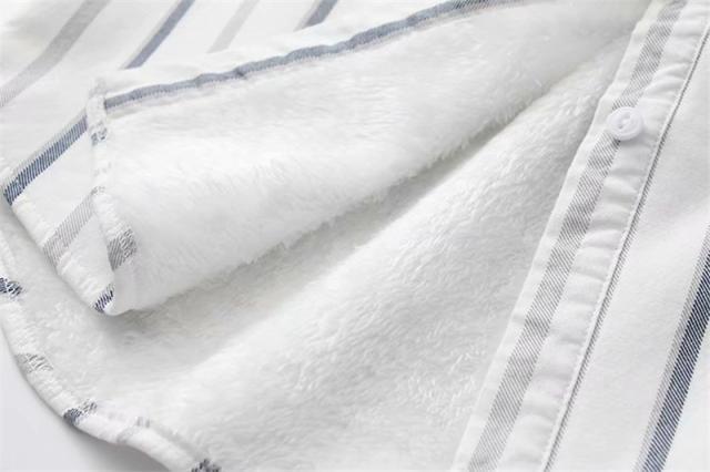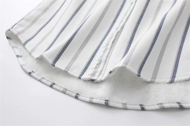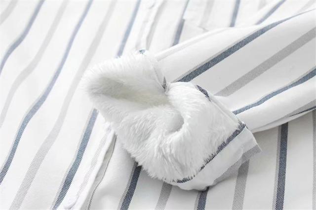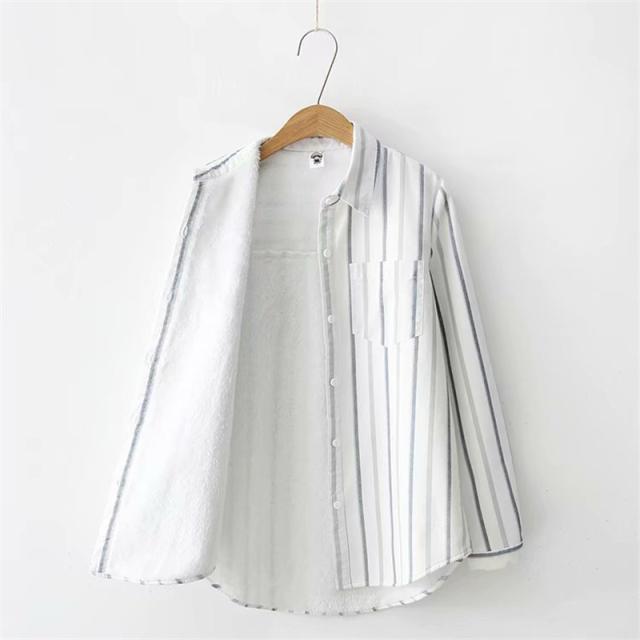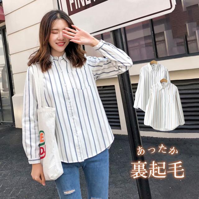 裏起毛シャツ シャツチュニック レディース 開襟シャツ 秋冬 ブラウス ストライプ柄 コットン 綿 柔らか シンプル 折り襟 ボタ