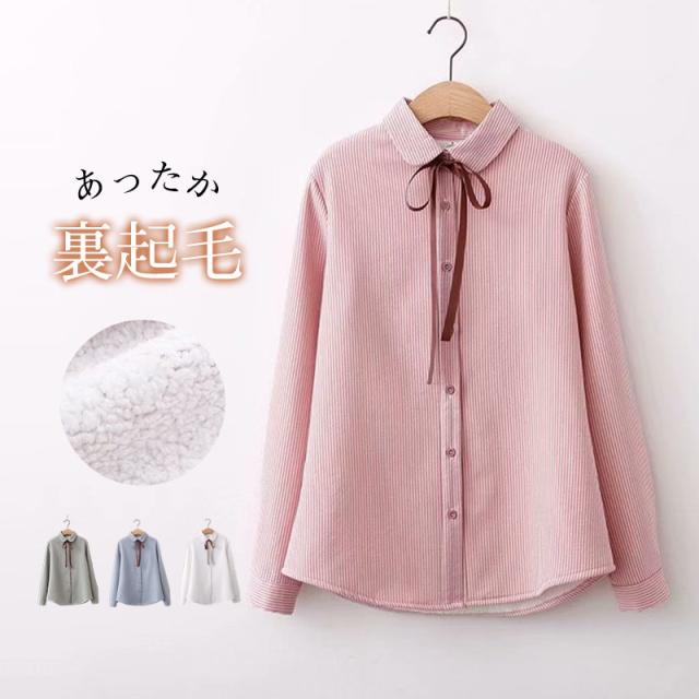 裏起毛シャツ シャツチュニック レディース トップス 裏ボア カットソー 開襟シャツ おしゃれ 胸ポケット きれいめ アウター ブ