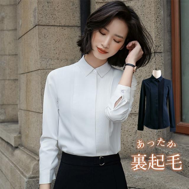 裏起毛シャツ シャツチュニック レディース 開襟シャツ おしゃれ ビジネス 就活 細身 事務服 あったか 防寒 厚手 おしゃれ 秋