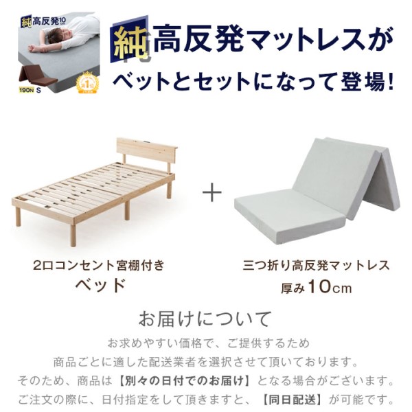 シングルベッド マットレス付 すのこベッド 宮付き 高さ調節 2段階 ベッド シングル マットレス ローベッド ベッドフレーム マットレス マットレス付き マットレスセット ウレタン 高反発 190N 10cm 北欧 すのこ【商品番号:11719265】