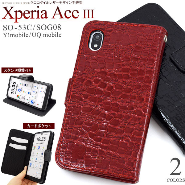 Xperia Ace III SO-53C SOG08 ケース 手帳型 クロコダイルレザーデザイン カバー ソニー エクスペリア エース マークスリー スマホケース