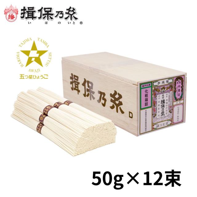 揖保乃糸 そうめん ギフト 縒つむぎ 紫帯 手延素麺 50g×12束 五つ星ひょうご 木箱 /MG-20N/
