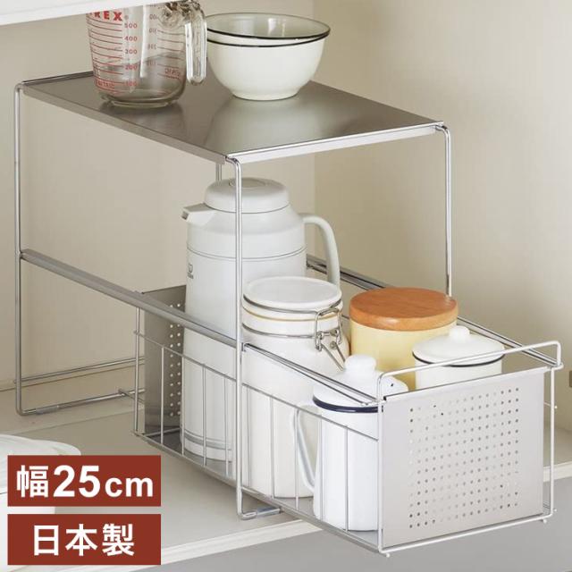 燕三条 シンク下スライド収納ラック 1段 幅25 奥行43.5 高さ35.5 日本製 シンク下 収納 引き出し 引出し ストッカー 食品 スリム すき間収納 隙間収納 ラック 棚 ヨシカワ 1305694【送料無料】