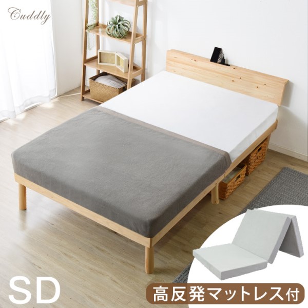 セミダブルベッド マットレス付 すのこベッド 宮付き 高さ調節 2段階 ベッド セミダブル マットレス ローベッド ベッドフレーム マットレス マットレス付き マットレスセット ウレタン 高反発 190N 10cm 北欧【商品番号:11719266】