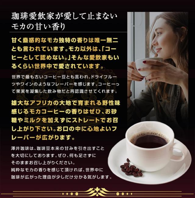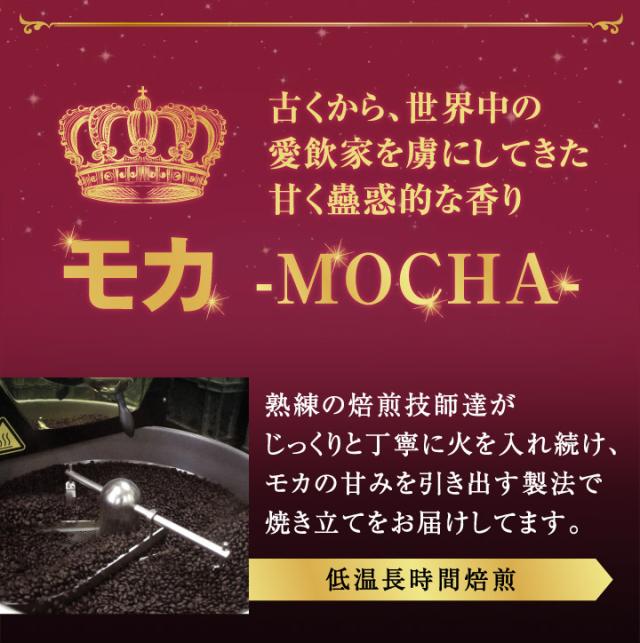 | こんな方にオススメです | 初めてのモカコーヒーを試してみたい方: ブラックでもミルクを入れても美味しく楽しむことができます リラックスタイムに美味しいコーヒーを飲みたい方: 香り高く華やかなモカコーヒーを楽しむためことが出来ます |