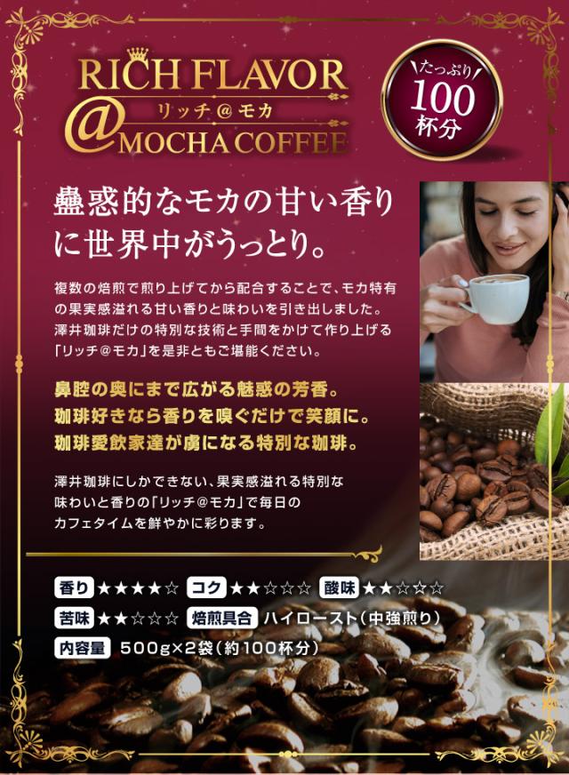 リッチ@モカ100杯分福袋 コーヒー コーヒー豆 1kg 珈琲 珈琲豆 コーヒー粉 粉 モカ モカコーヒー