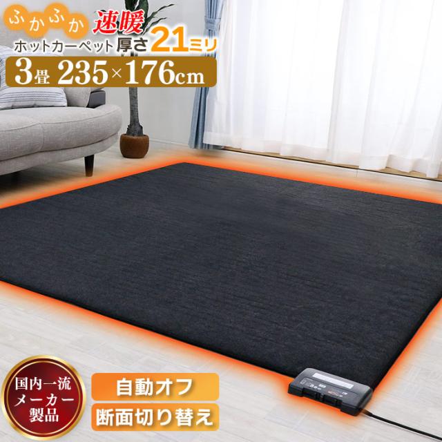 ホットカーペット ふかふか遠赤省エネ電気カーペット 暖かい 235×176 秋 冬 暖房器具 暖房 3畳用 あったかグッズ コンパクト収納 こたつ併用可能 8時間自動オフ ダニクリーン