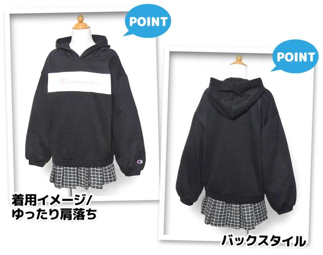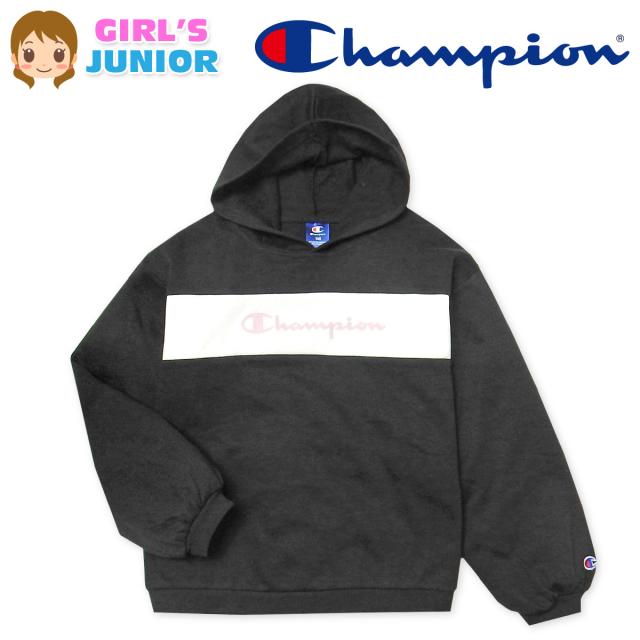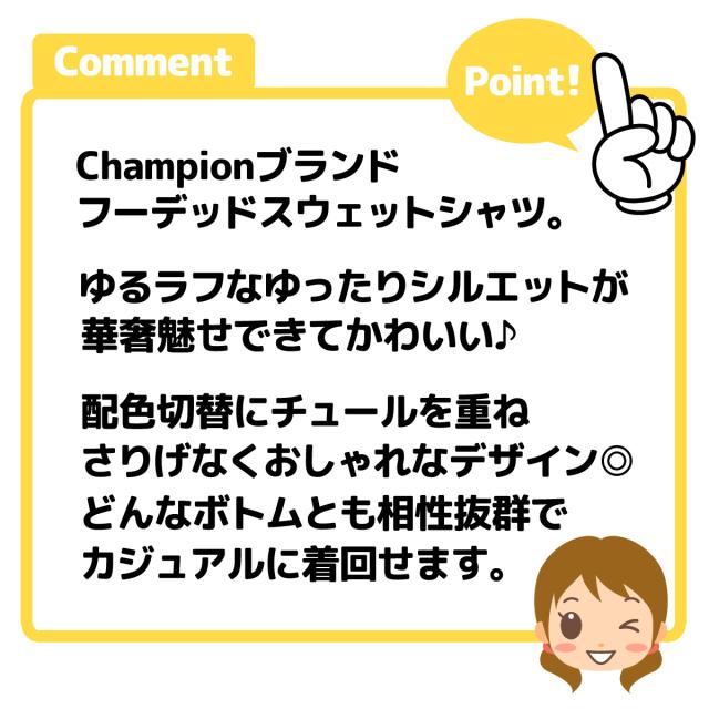 【送料無料】女児 ジュニア 長袖 フーデッド スウェット シャツ Champion ゆったり 配色 チュール重ね td-0530b-bk【メール便対応】