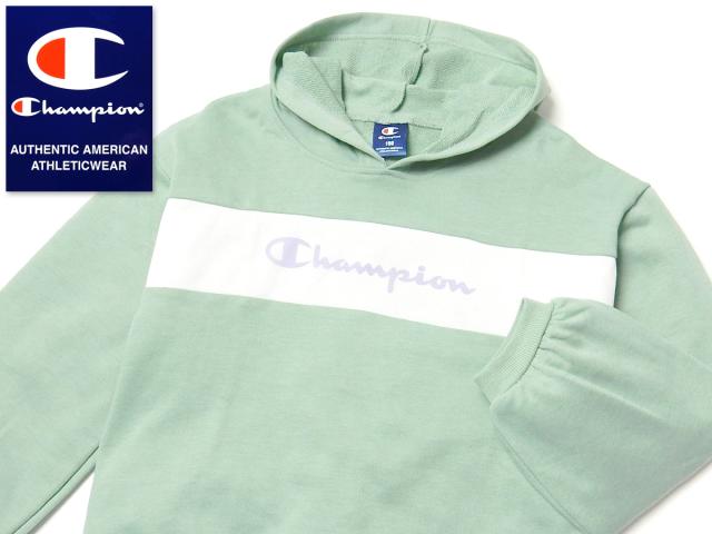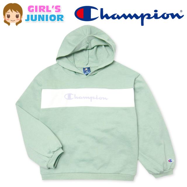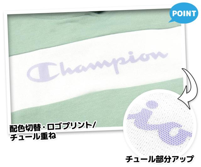 【送料無料】女児 ジュニア 長袖 フーデッド スウェット シャツ Champion ゆったり 配色 チュール重ね td-0530a-lgn【メール便対応】