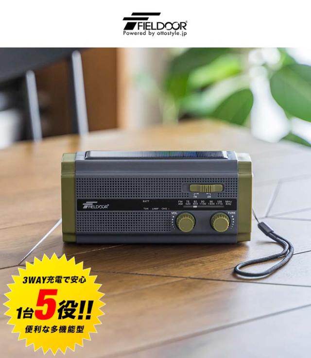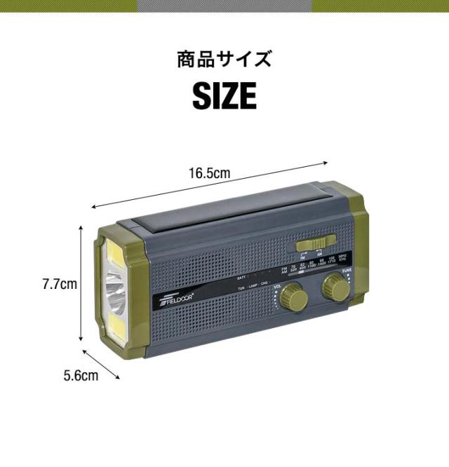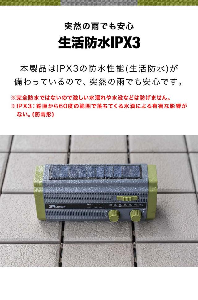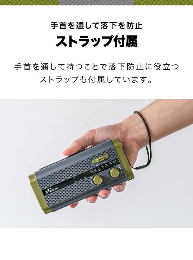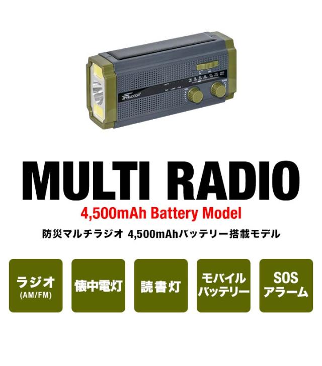 防災ラジオ 多機能 スマホ充電 大容量4500mAh 乾電池 手回し ソーラー AM/FM ラジオ ライト モバイルバッテリー FIELDOOR SOSアラーム LEDライト USB充電 ソーラー充電 防災グッズ 懐中電灯 多機能防災ラジオ ポータブルラジオ 1年保証 送料無料