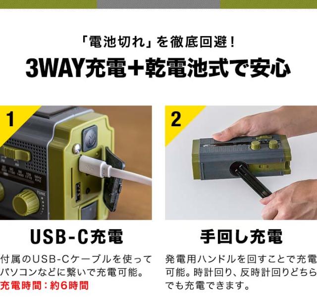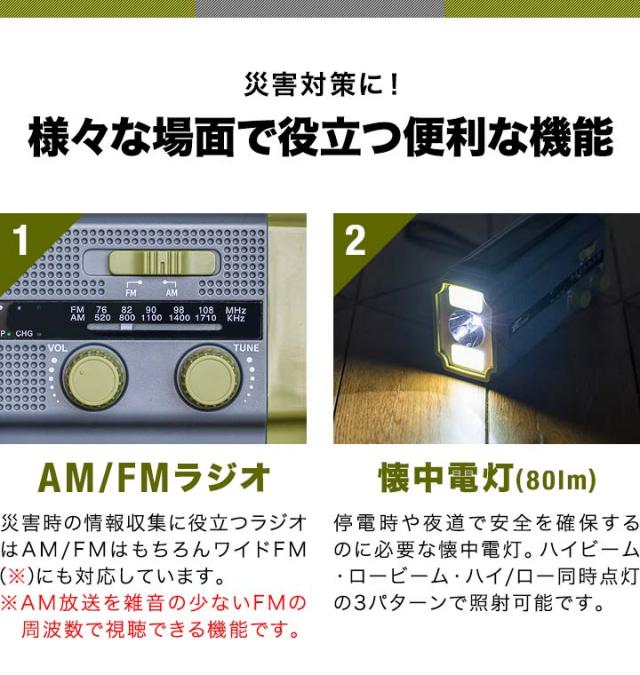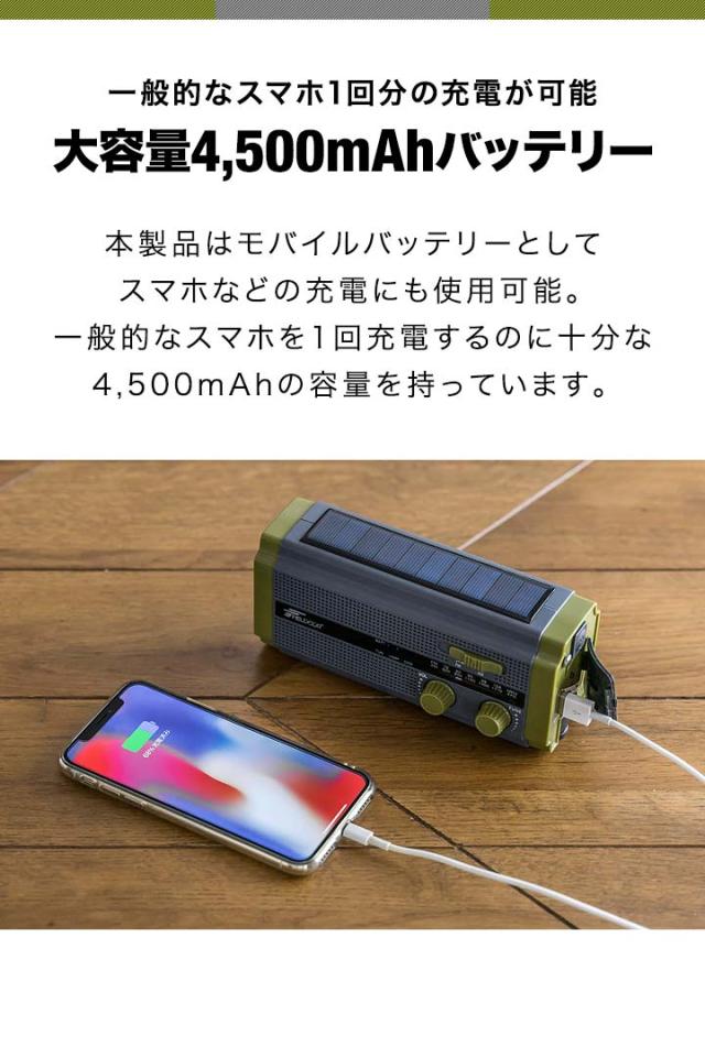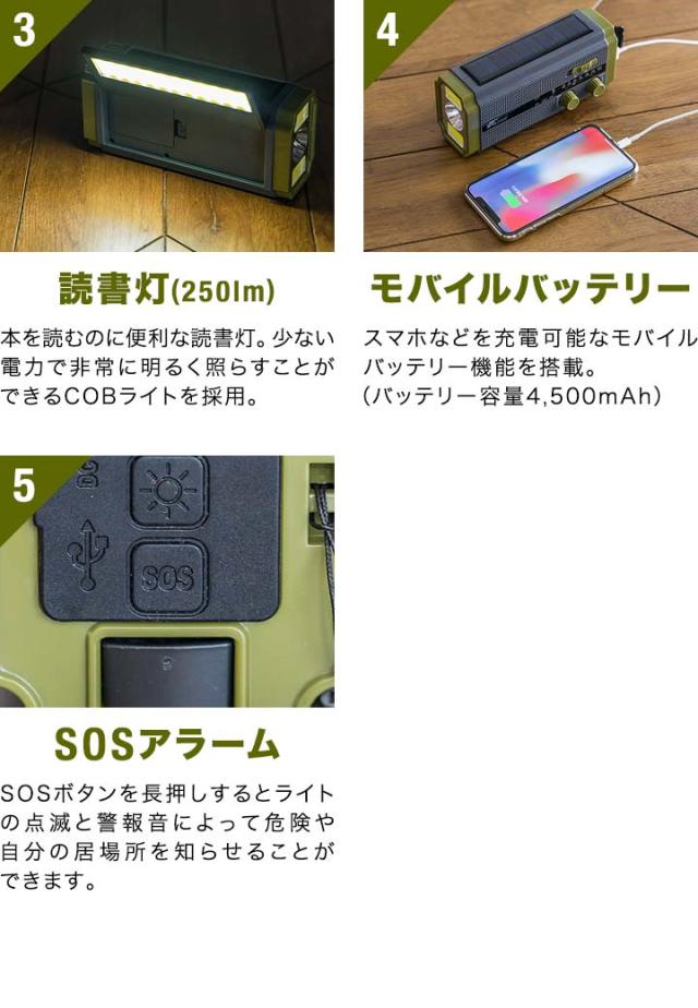 防災マルチラジオ 4500mAh 手回しラジオ ソーラーラジオ 多機能 防災グッズ 防災セット 防災ライト アウトドア キャンプ ラジオライト ハンディライト 防災 防犯 セーフティ 避難用具 地震対策 災害対策 停電対策 避難グッズ 非常持出袋 防災用品 非常時 緊急時 災害時 常備 備え 万が一 いざという時 身を守る 身の安全 LEDライト FM/AMラジオ アンテナ イヤホン ジャック 栓抜き LED 懐中電灯 読書灯 スマホ充電 モバイルバッテリー リチウムイオン電池 手回し充電 手回し発電機 ダイナモライト ソーラー充電 単4 電池 乾電池対応 USB充電 充電 給電 蓄電 iphone Android スマートフォン 携帯電話 充電器 アクセサリー ガジェット ギア USB typea typec SOSアラーム SOSサイレン SOSアラート SOS発信 SOS警報 サイレン ブザー レスキューライト モールス信号 音が鳴る 生活防水 IPX3 防水 防滴 防雨 コンパクト おしゃれ 枕元 玄関 リビング 寝室 カラビナ 吊るす ぶら下げる 掛ける 緊急地震速報 携帯 モバイル ポータブル 防災士 推奨 監修 日本語マニュアル 説明書付き 日用品雑貨・文房具・手芸 防災関連グッズ 防災ラジオ 多機能ラジオ