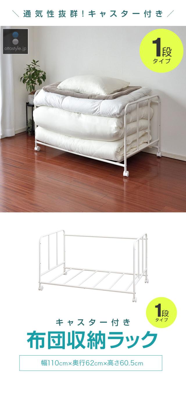 布団収納ラック 押し入れ キャスター付き 1段 高さ3段調整 改良型 幅110cm×奥行62cm×高さ60.5cm 横置き ワゴン ふとん収納 収納ラック 押入れラック 押入れ収納 布団収納棚 クローゼット 収納ワゴン 押し入れ台車 布団収納庫 1年保証 送料無料