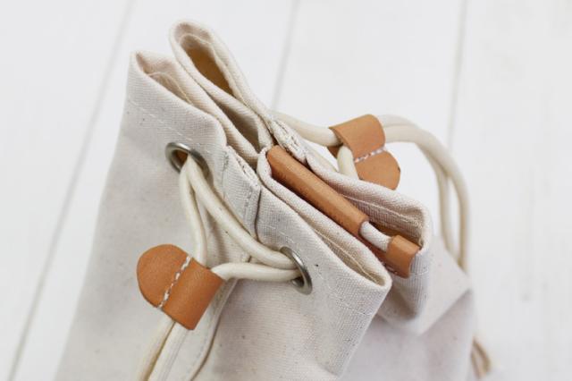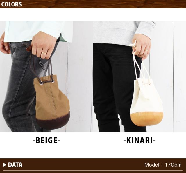 巾着型のユニークな形状が目を惹く、 遊び心を感じるキャンバス×レザーポーチ