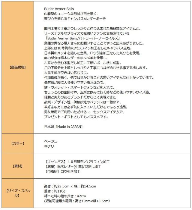 Butler Verner Sails 巾着 バッグ モールドレザー 栃木レザー 本革 巾着袋 フェス アウトドア キャンプ ユニセックス プレゼント ja-2141