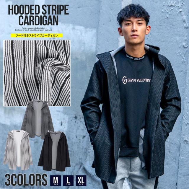 カーディガン メンズ フード フーディー ボタンレス ストライプ シンプル アウター 羽織り 防寒 きれいめ シンプル カジュアル ファッション おしゃれ 春 夏 秋 冬 ストリート ストリート系 ストリートファッション 韓国 韓国系 韓国ファッション 下北沢 下北系 古着 古着系 90s 90年代 グレー ホワイト ブラック 白 黒 秋 冬 CavariA キャバリア 男性 男 父の日 父の日ギフト 父の日プレゼント 20代 30代 40代 メンズファッション 東京 プレゼント 誕生日 記念日 贈り物 ギフト配送について