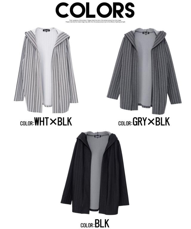 カーディガン メンズ フード フーディー ボタンレス ストライプ シンプル アウター 羽織り 防寒 きれいめ シンプル カジュアルおしゃれ 秋 冬 ブラック グレー ホワイト 白 黒 秋 冬 CavariA 20代 30代 40代 メンズファッション 即日発送 [CAST22-39]