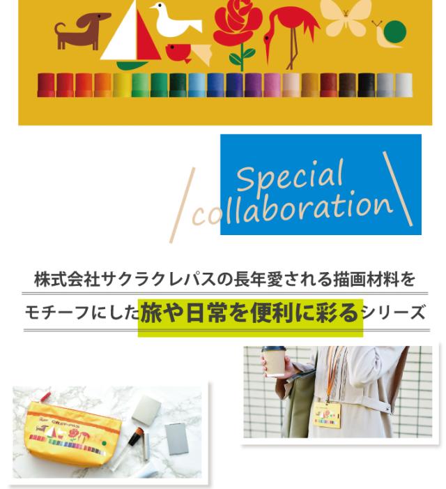 株式会社サクラクレパスの長年愛される描画材料をモチーフにした旅や日常使いもできるアイテムシリーズです。
