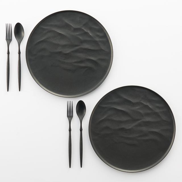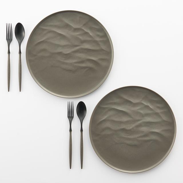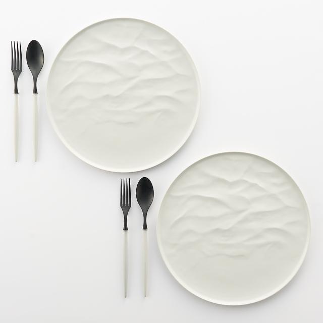 ARAS ウェーブ 大皿27.5cm 割れないお皿 特典付きの同色ペアセット(同色お皿2枚+同色フォーク&スプーン2セット+お箸の特典… 601804