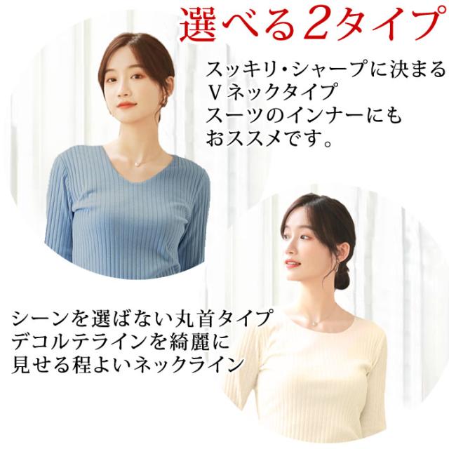 程よく開いたネックラインが、シャープですっきりとした印象を与えてくれるVネックタイプとシーンを選ばない丸首タイプ。