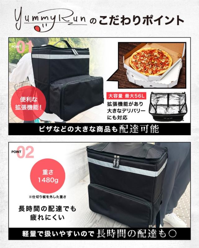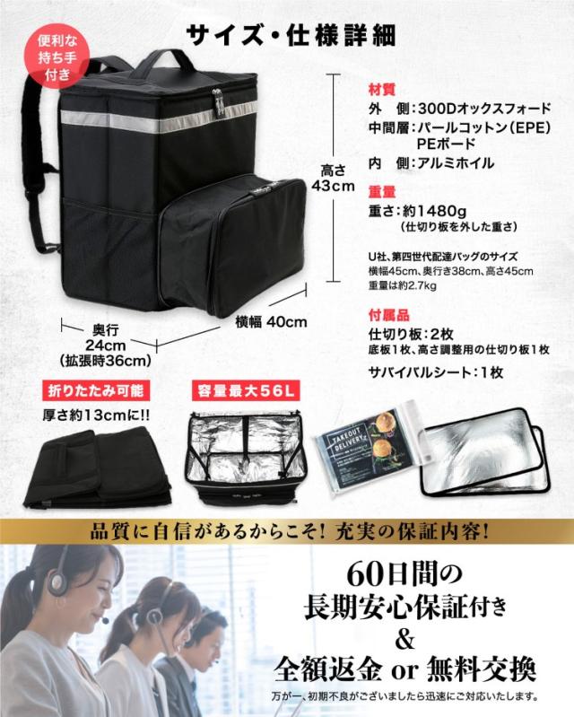 デリバリーバッグ [拡張機能付きで効率UP] 配達バッグ 配達用バッグ 防水 ウバッグ デリバリーバック 拡張 大容量 56L