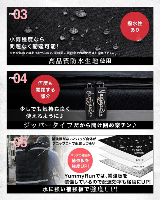 バッグの内側に水に強いPEボードを装備しているので、バッグがフニャフニャにならないので、とても扱いやすく配達効率UP!