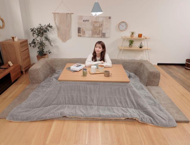 座面の低いフロアソファなので、冬はこたつと合わせるのもおすすめです。背中からの冷気をブロックするので、温かさが逃げにくく電気代節約にもなります。