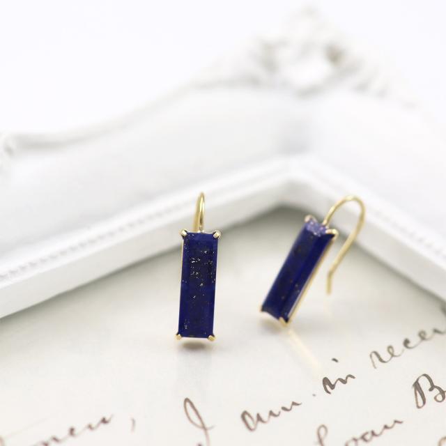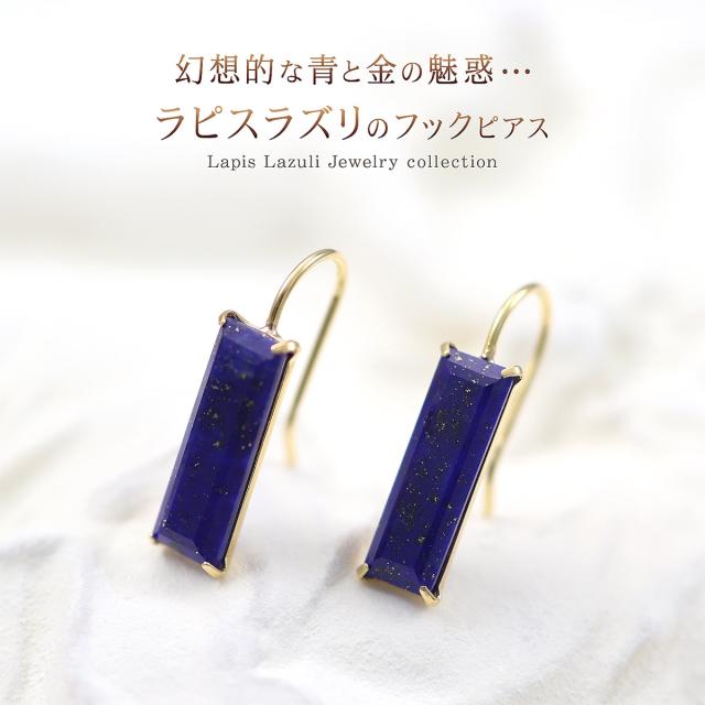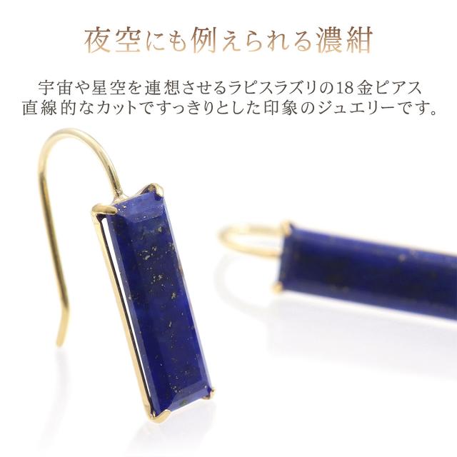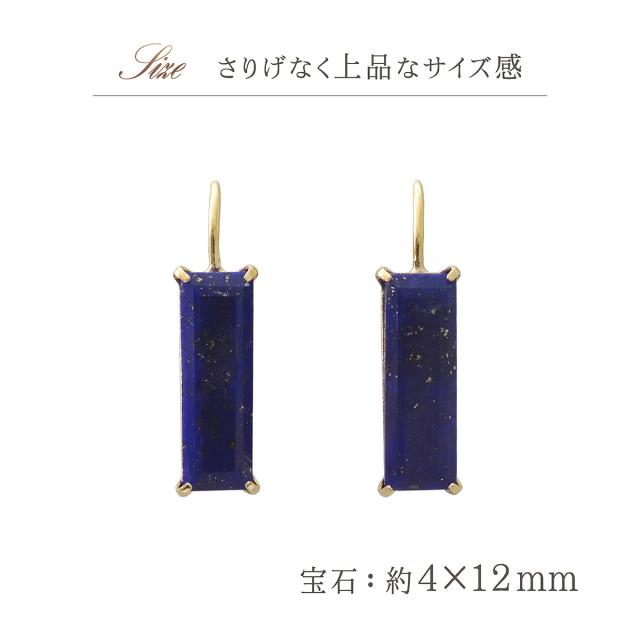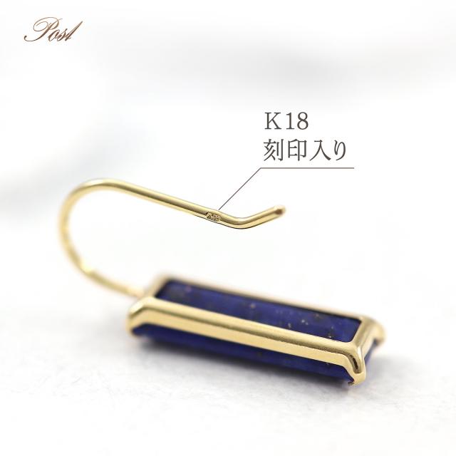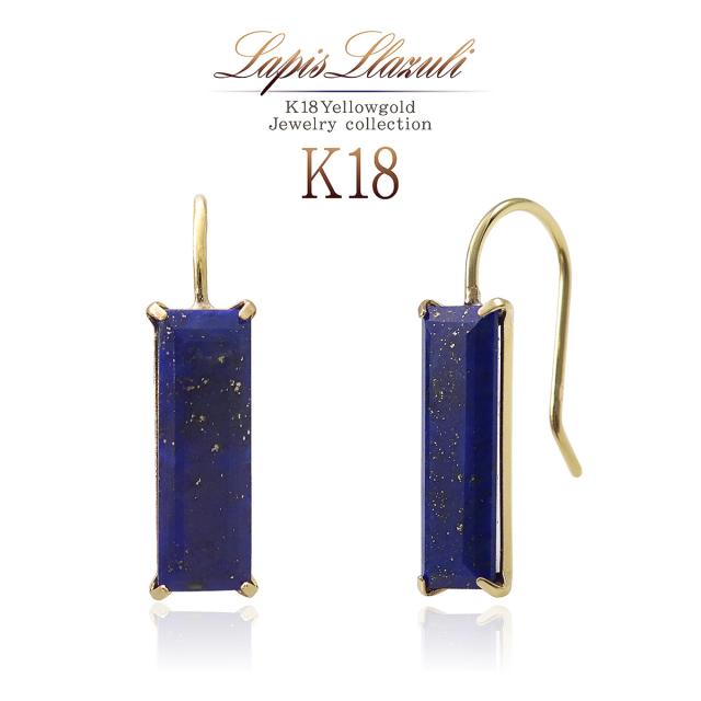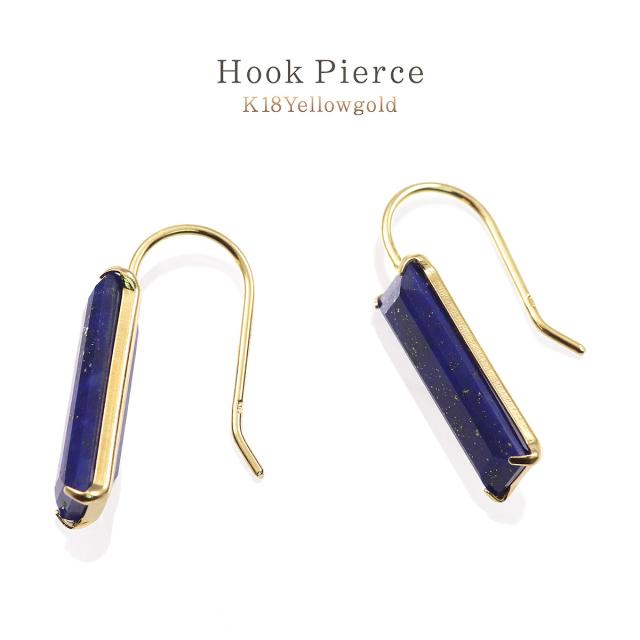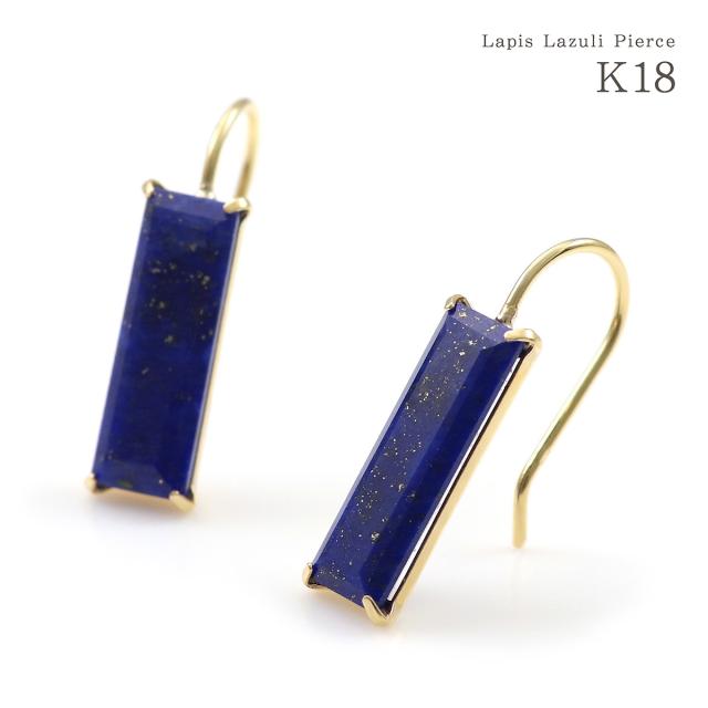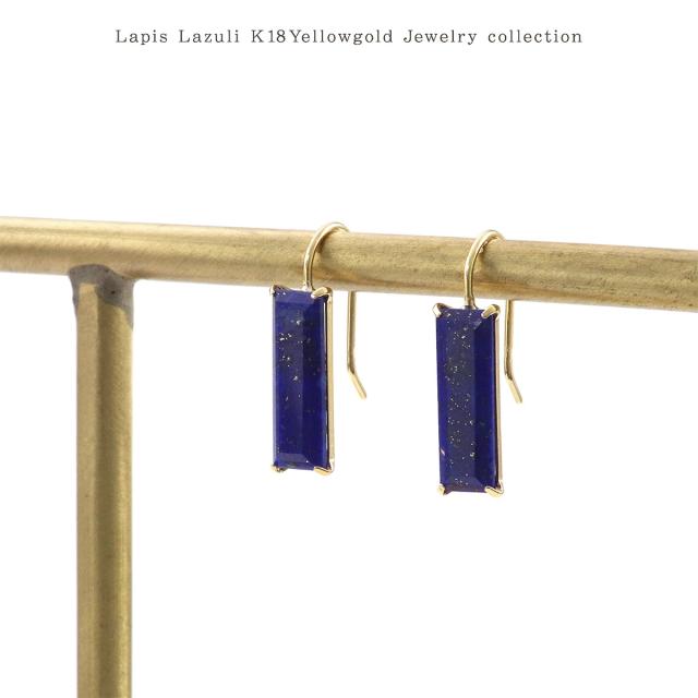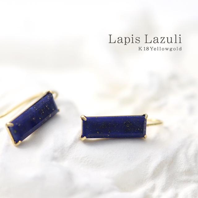 ラピスラズリ ピアス 18金 イエローゴールド レディース 18K フックピアス K18 プレゼント 記念日 誕生日 贈り物 お祝い 12月 誕生石 シンプル 長方形 細長い 細身 バケットカット ネイビー ブルー 紺 金斑 おしゃれ 可愛い 天然石 小ぶり 小さめ 女性 クリスマス プレゼント