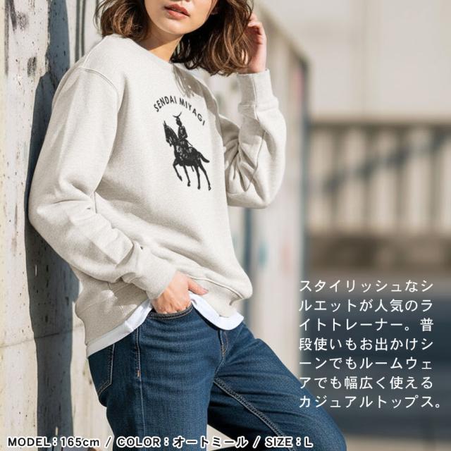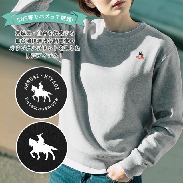 トレーナー スウェット 政宗 仙台藩 伊達政宗 騎馬像 レディース メンズ ロンT 裏毛 長袖 韓国 政宗 プリント ワンポイント 長め 大きいサイズ オーバーサイズ ユニセックス トップス ロング ゆったり 送料無料 (toms00219)