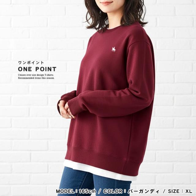 【トレーナー スウェット レディース メンズ 裏毛 長袖 韓国 長め丈 大きいサイズ おしゃれ オーバーサイズ ユニセックス トップス ロング丈 ルームウェア 部屋着 大きめ 大きい M L XL サイズ】